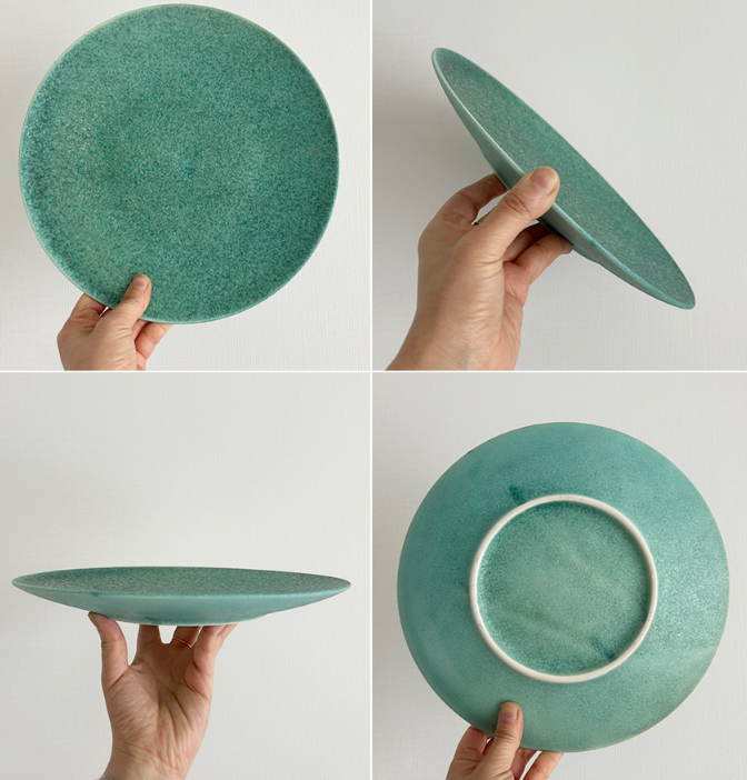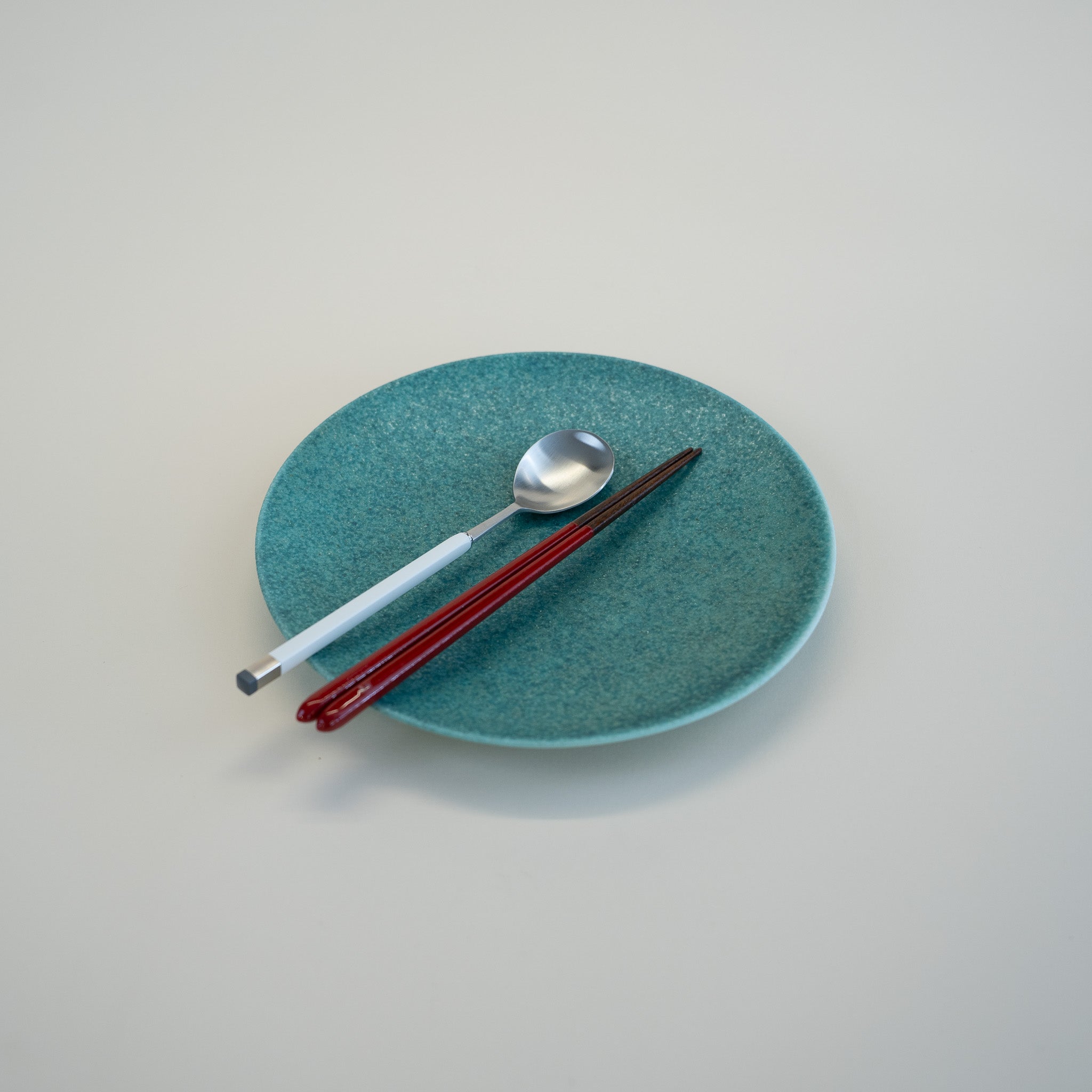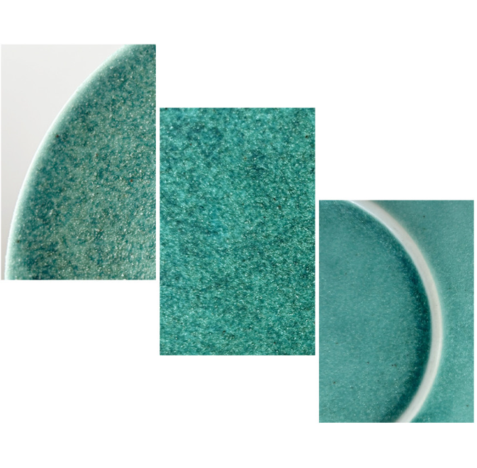 Inspired by the shimmer of sunlit beaches and gentle ocean waves, this round plate features a uniquely textured surface reminiscent of sparkling sand and moisture-rich aqua tones. The subtle, light-reflective finish adds a delicate charm to any table setting.