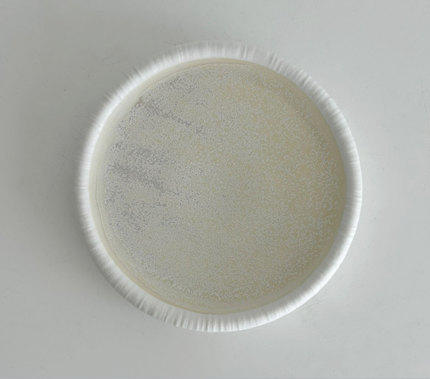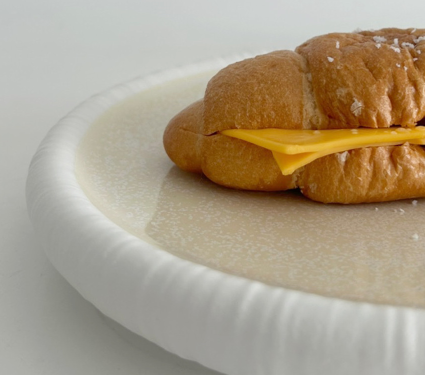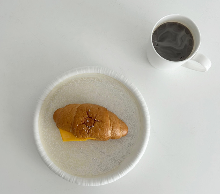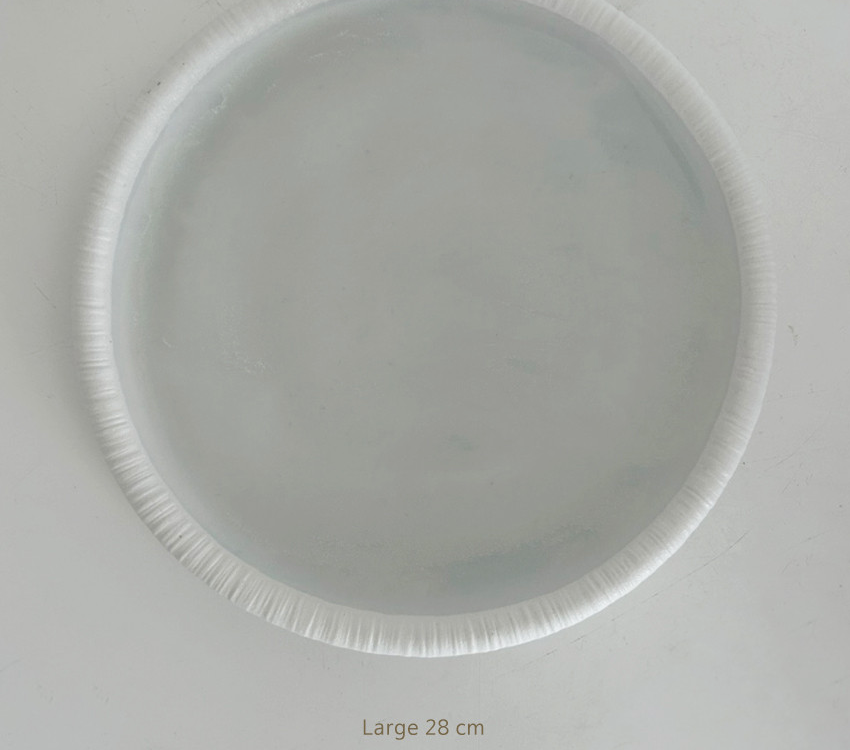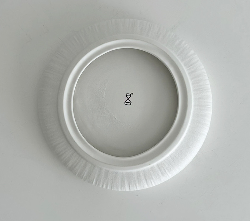 The Crema Round Plate features a unique rim design that looks as if gently wrapped in white fabric, with a pleasantly smooth surface that feels soft to the touch.