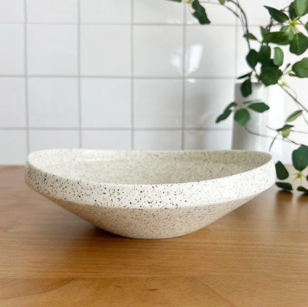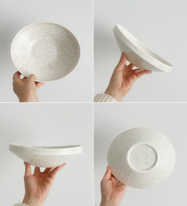 Featuring a unique design and refined texture, this piece brings understated elegance to any table. The slightly rough, cookie-like surface adds not only visual charm but also a tactile, sensory element to your meal. With its calm and sophisticated tone, this versatile bowl beautifully complements a wide range of dishes—from pasta and salads to rice and stews.