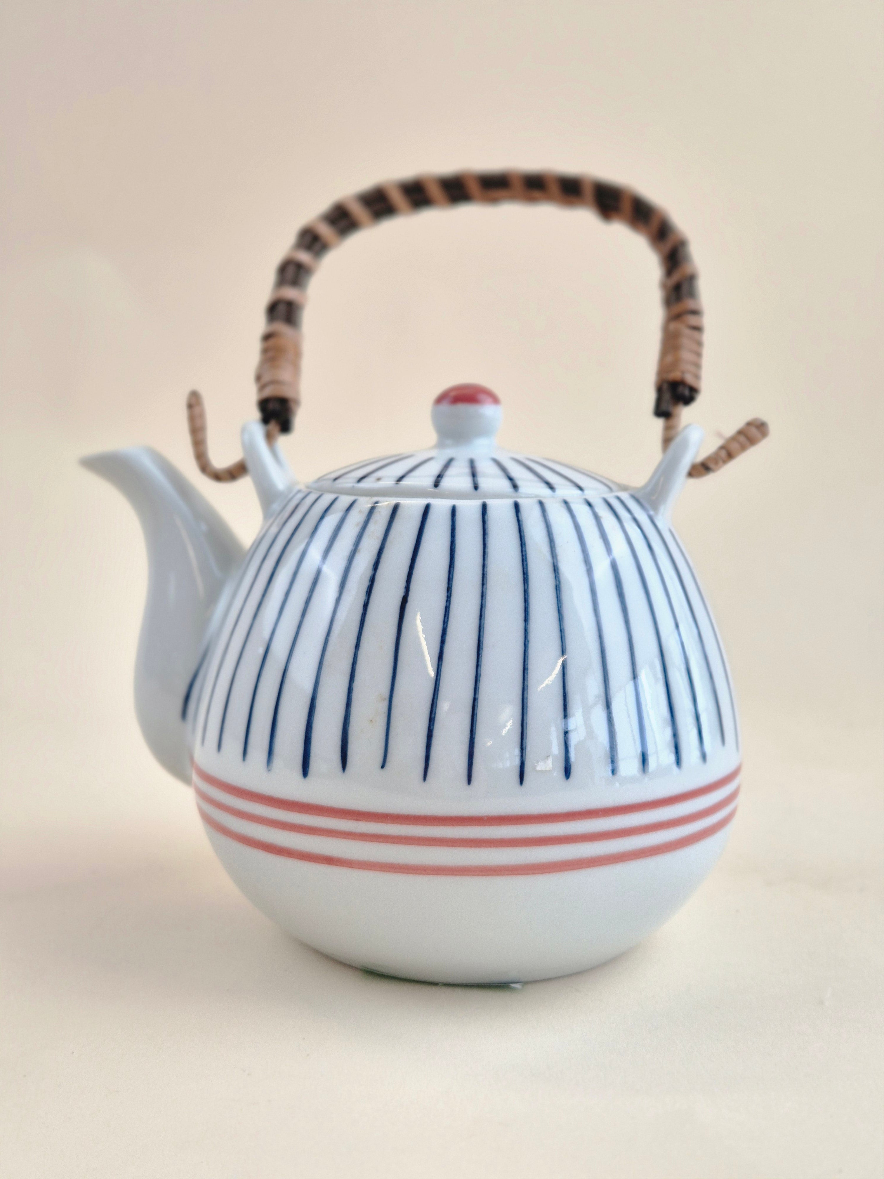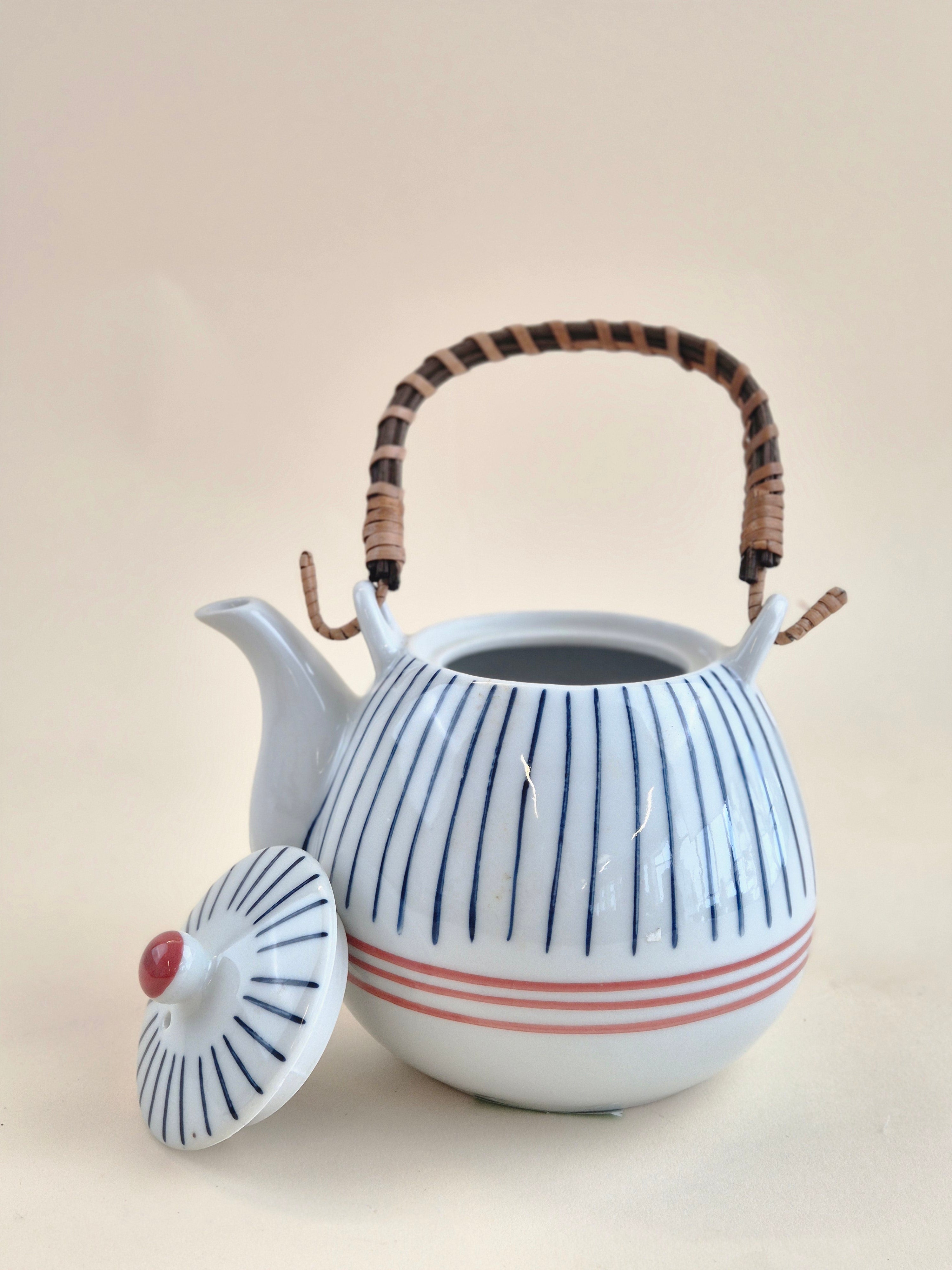 Haito Blue Stripe Teapot is a beautifully designed ceramic teapot perfect for warming and serving sake, tea, or other hot beverages. Featuring a clean and elegant blue stripe pattern, this teapot enhances the aesthetic of any table setting while offering practicality for everyday use. Its 700ml capacity makes it ideal for small gatherings or personal use.