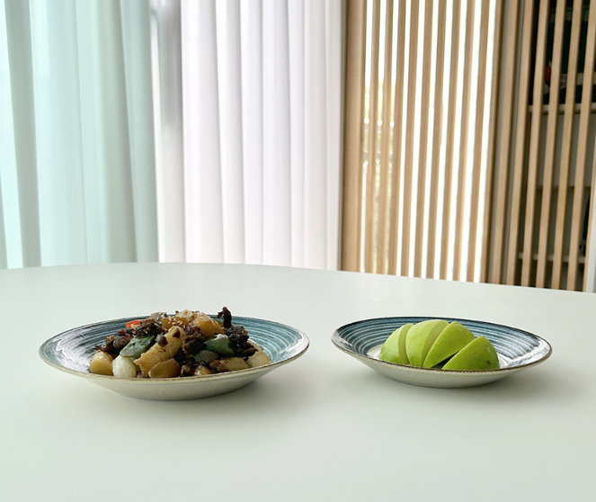 The Hida Series features calm matte tones of blue and brown that beautifully highlight dishes when served. With its warm and simple design, the Hida Plate pairs perfectly with homestyle meals, bringing a cozy and inviting touch to your table.