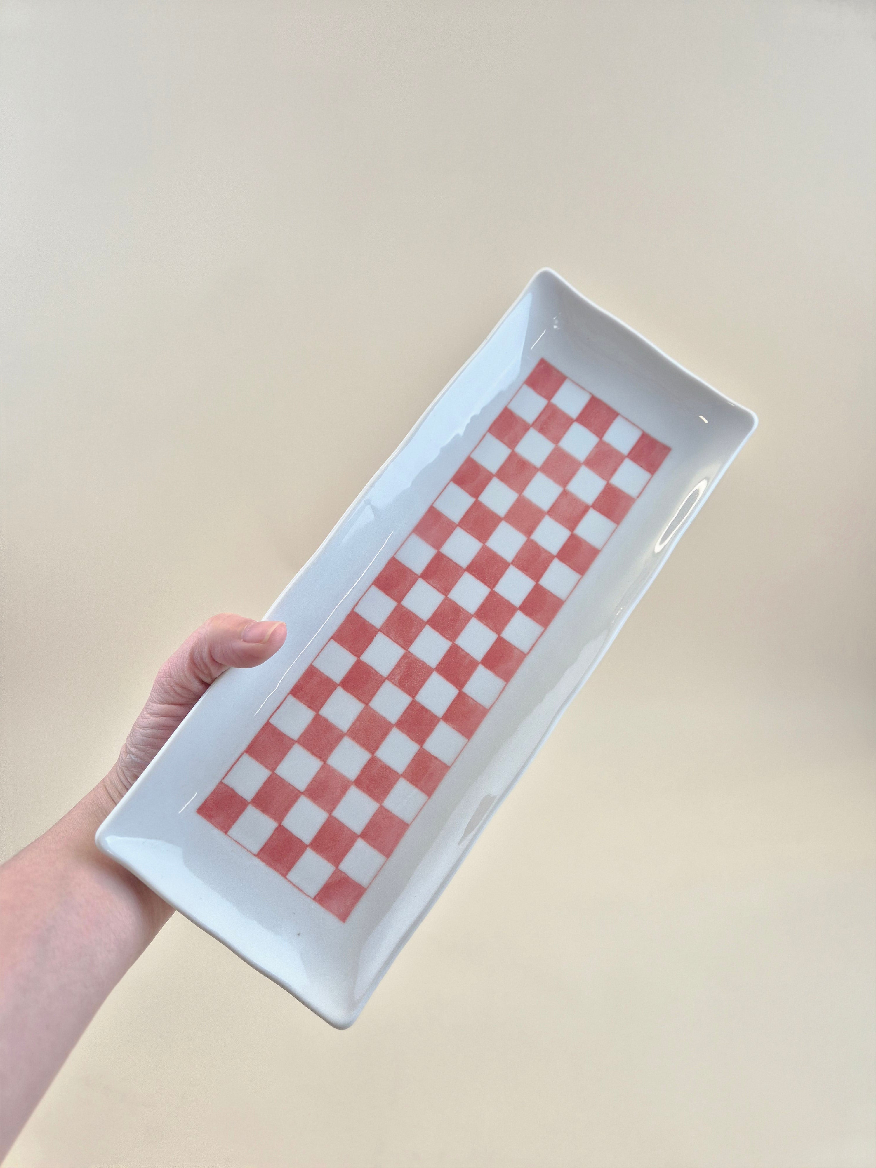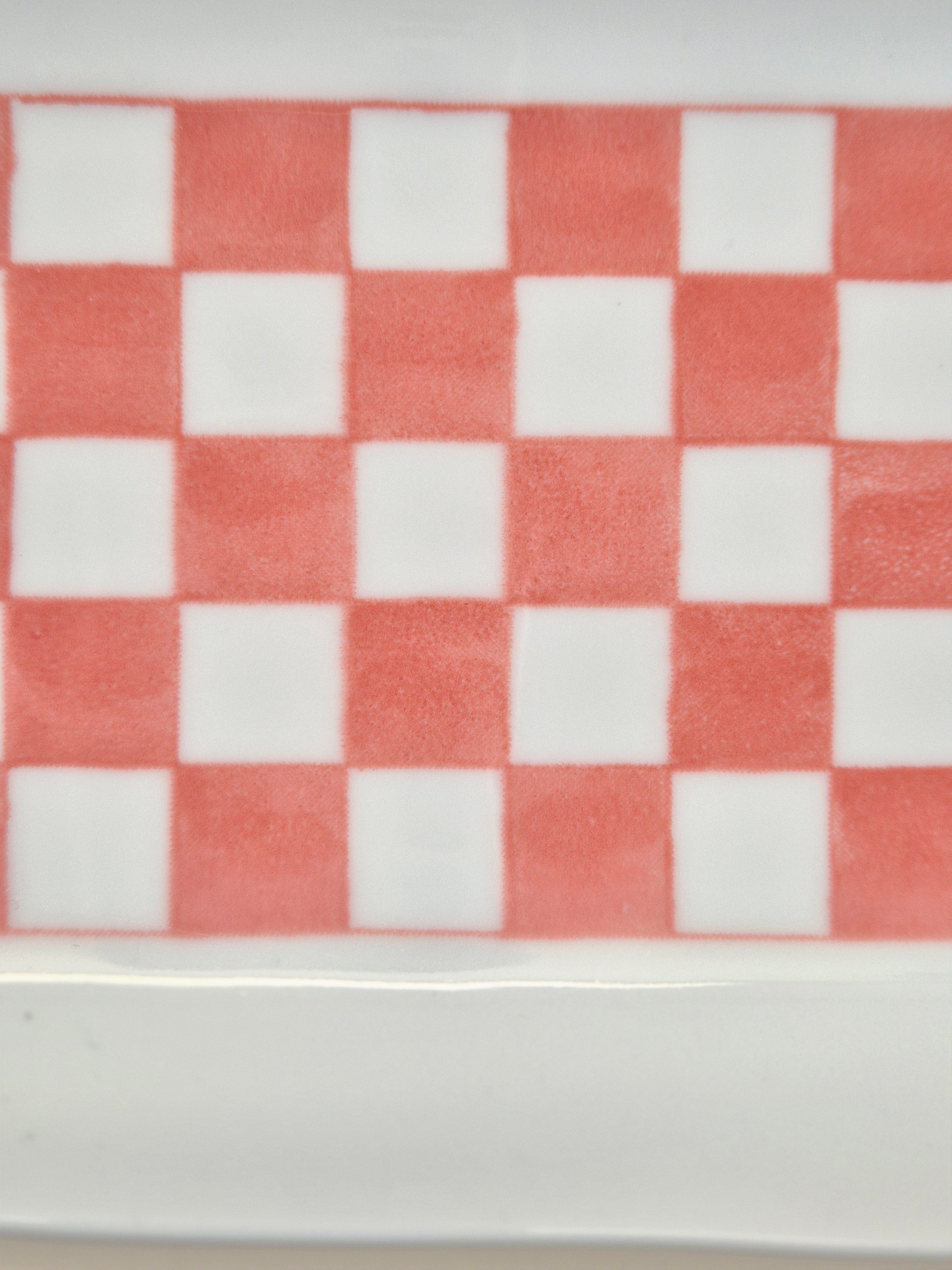 Shikaku Red Check Long Rectangular Plate 27.8cm