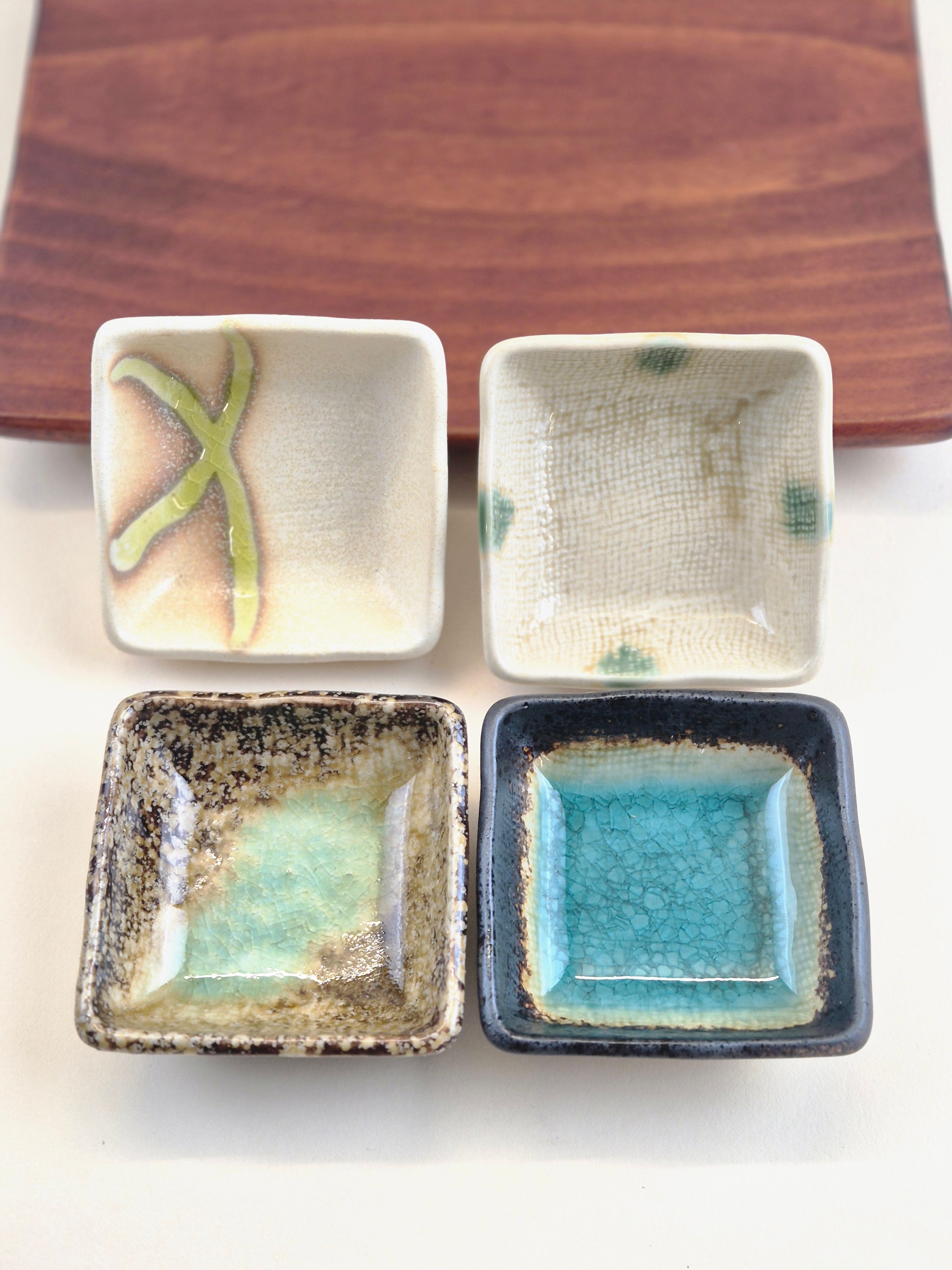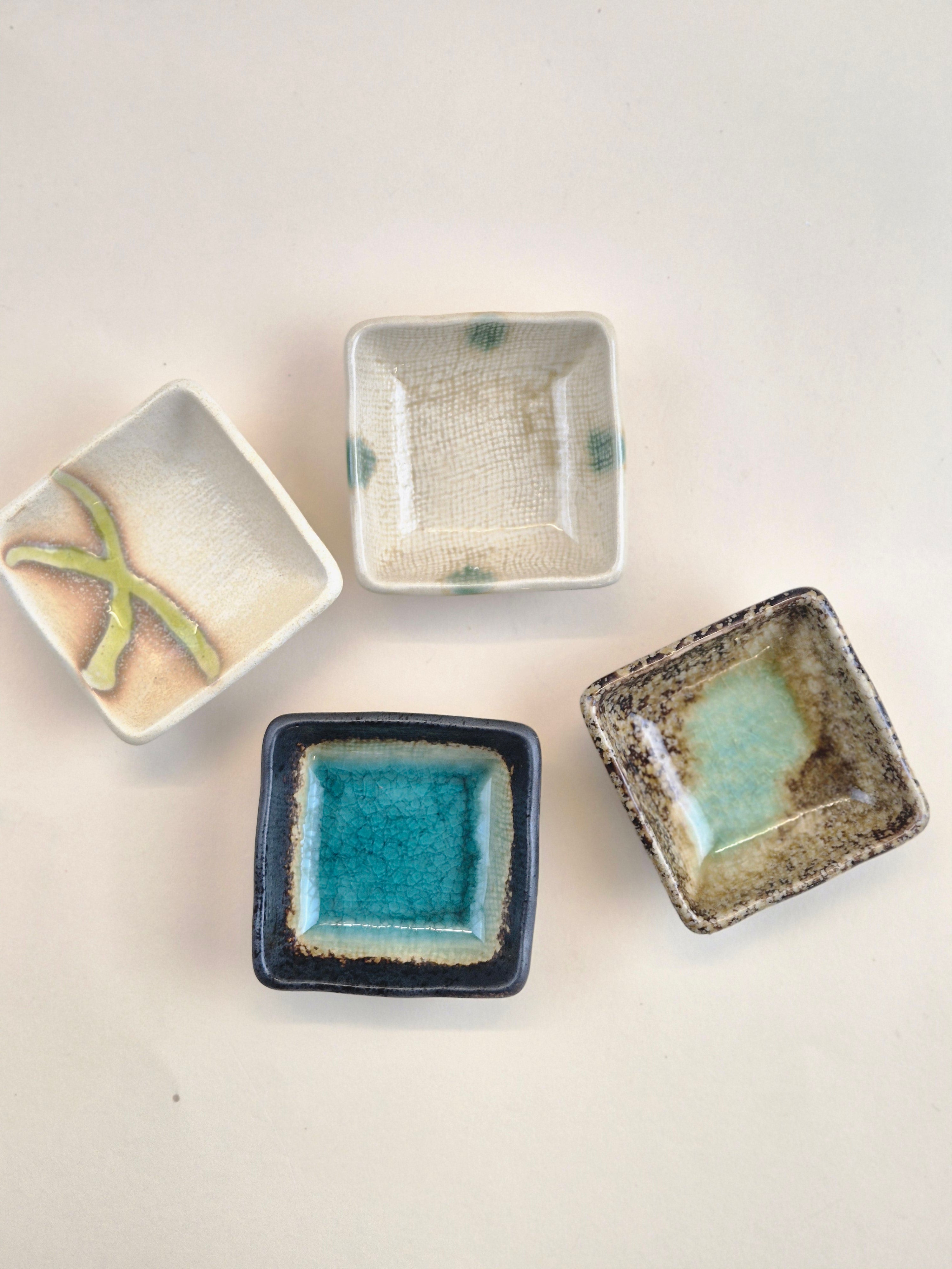 These mini square sauce bowls showcase the natural beauty of Japanese ceramics, featuring the earthy texture of clay and the gentle flow of natural glaze. The clean, minimalist square shape adds a refined and elegant touch to your table, making them perfect for serving sauces, condiments, pickles, or small side dishes. Despite their compact size, they bring balance and sophistication to any dining setting.